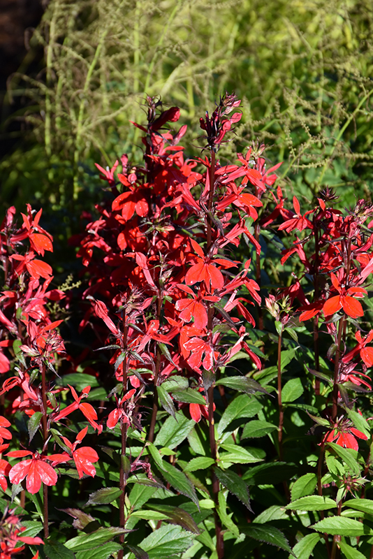 Starship™ Scarlet Lobelia features showy spikes of scarlet flowers rising above the foliage from mid summer to early fall. The flowers are excellent for cutting. Its pointy leaves emerge burgundy in spring, turning green in color with prominent coppery-bronze tips throughout the season.